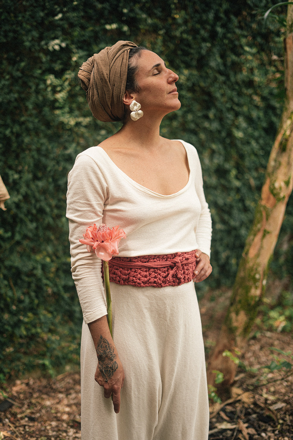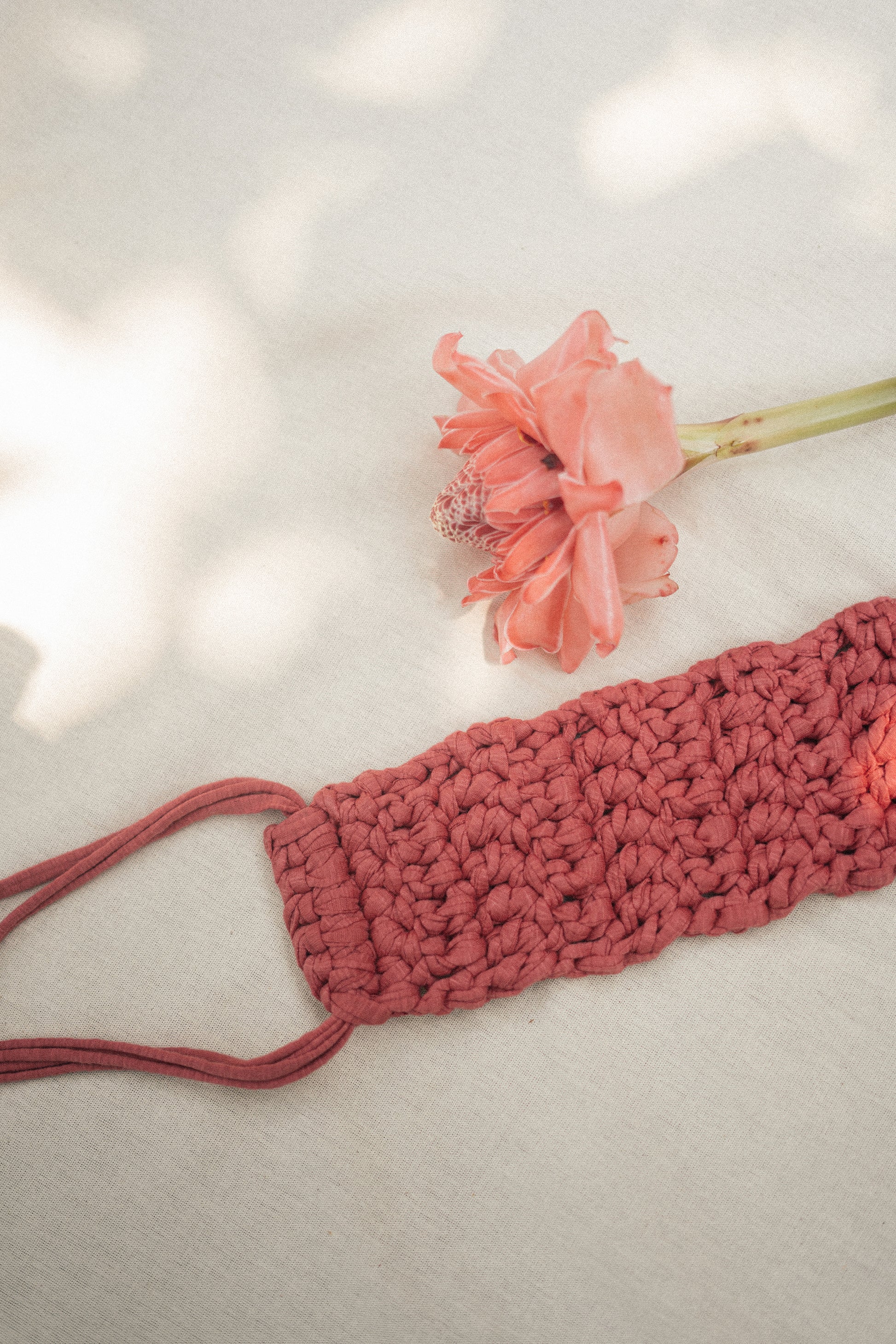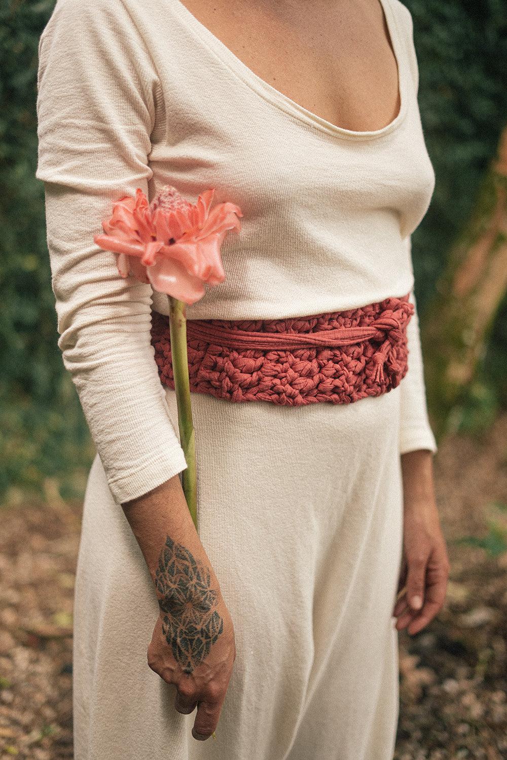 Faixa Uterina feita artesanalmente em crochê com fios de eco malha. Este fio e proveniente do reaproveitamento de resíduos têxteis